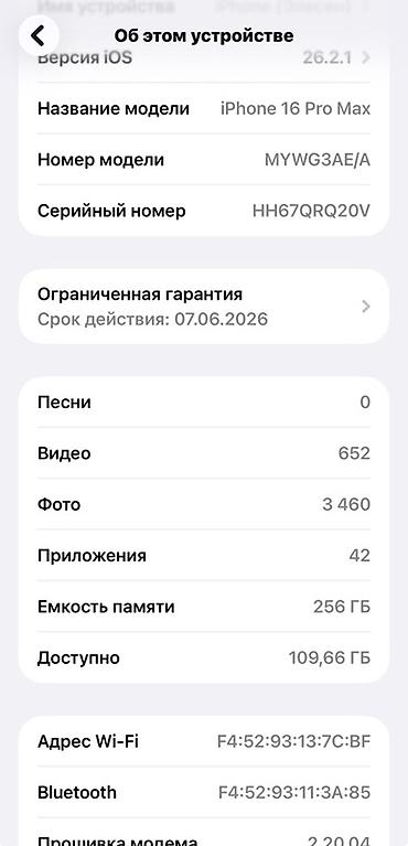 - Память: 256 ГБ (доступно ~109,66 ГБ на момент скриншота)