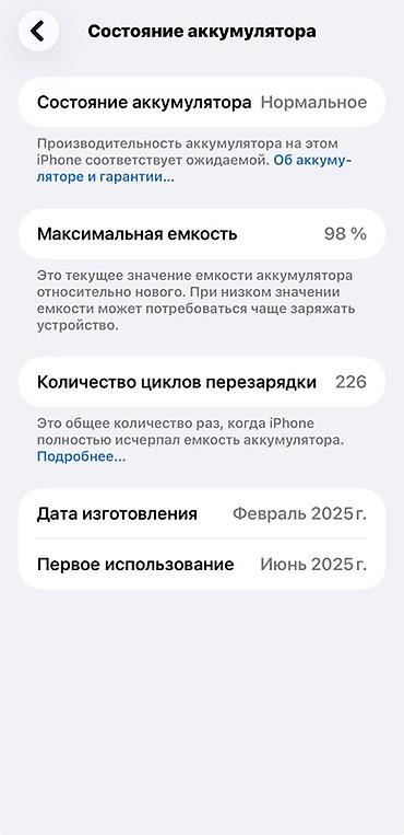 - Состояние аккумулятора: Нормальное