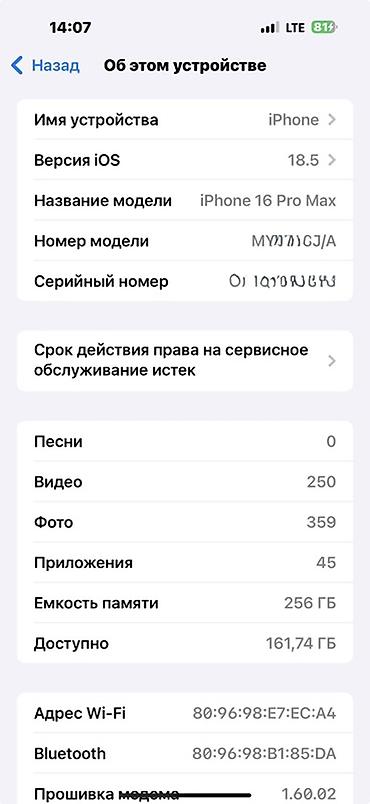 IPhone 16 Pro Max, 256 ГБ, цвет чёрный (Natural/Black) - Модель: iPhone 16 Pro Max (номер модели MYWG3AE/A) - Память: 256 ГБ - iOS: 18.6.2 - Дисплей: 6.9" Super Retina XDR с частотой до 120 Гц (Pr...