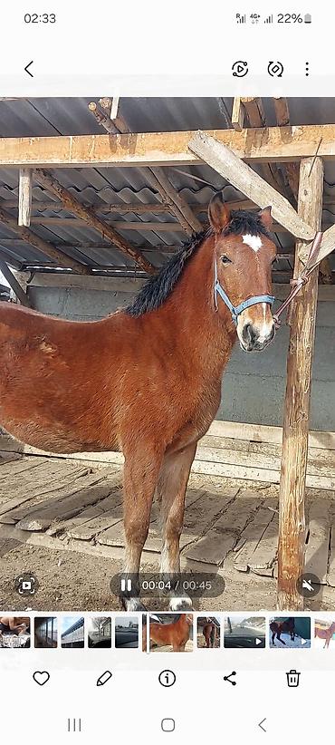 Лошадь гнедой масти в недоуздке. Английской породы Байтал 2 жаш Рост 1.6 или меняю Варианты обмена машина авто доплачу - Масть: гнедая, темные ноги и хвост. - - Конформация: сухая голова, крепкая...
