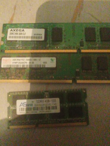 - 2 планки DDR2 для ПК по 2 ГБ каждая (совместимы с десктопными платами DDR2). На фото видны модули AXEGA DDR2‑800 2GB и Hynix/Apogee 2GB PC2‑6400. Форм‑фактор DIMM, частота до 800 МГц (PC2‑6400).