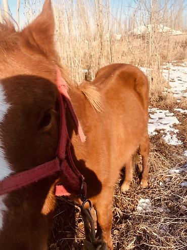 жеребёнок, 6 месяцев, упитанная. Окрас темный, в недоуздке. Подходит для дальнейшего выращивания. Цена: 65 000 сом.
