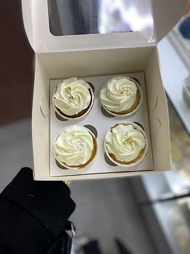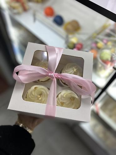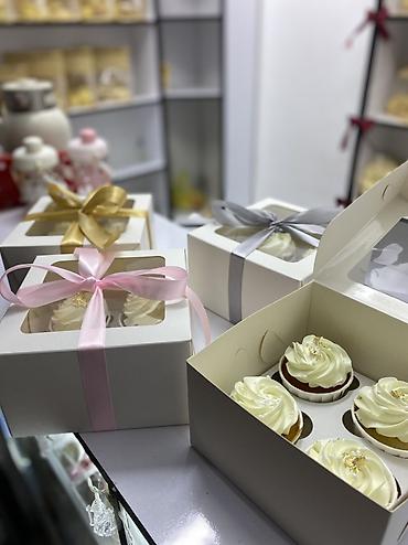 - Упаковка: плотная белая коробка с прозрачным окошком и фиксирующим ложементом на 4 капкейка.