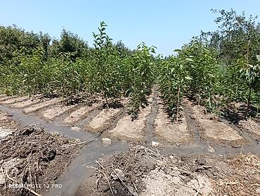 - Сильные однолетние/двухлетние саженцы с хорошо облиственными побегами; часть растений уже закладывает плоды.