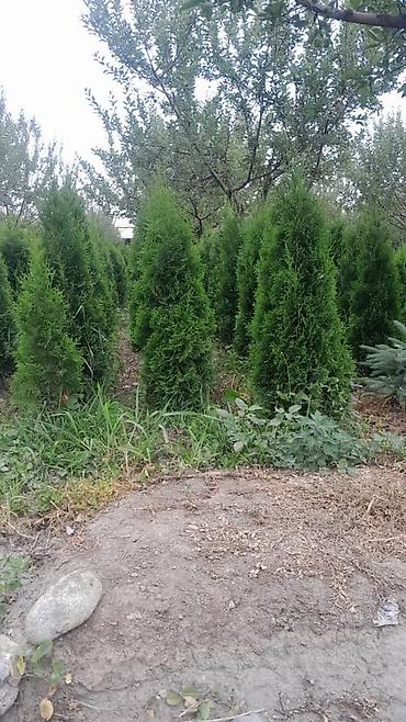 - Разные размеры: от молодых саженцев до сформированных растений средней высоты (видно на фото).