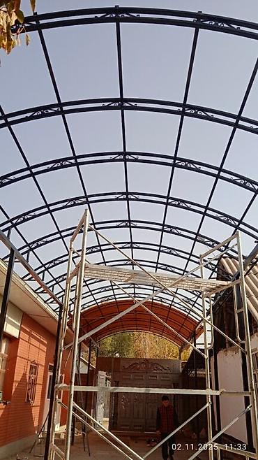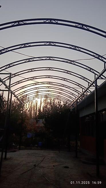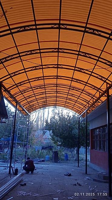 Навес ферма арка навес жасайбыз бардык турун сварка навес материалы менен заказ алабыз под ключ арка полу арка односкат двухскат хай тек замер качество и гарантия заготовка и установка люб...