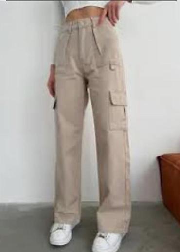 Брюки карго, бежевые - Прямой крой с заужением к низу - Эластичный пояс с внутренней утяжкой и застёжкой на пуговицу и молнию - Манжеты с резинкой по низу штанин - Множество карманов: боковые прор...
