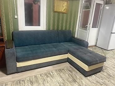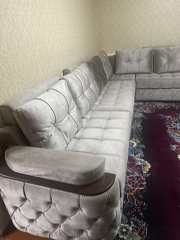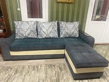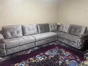 Угловой диван с оттоманкой Б/у - Конфигурация: угловая, правая оттоманка. - Посадочные места: 4–5 человек. - Комплектация: три большие спинки-подушки, широкое сиденье, оттоманка для отдыха ног. -...
