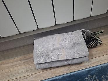 3) Сумка‑клатч/кросс‑боди, светло‑серая с тиснением «под рептилию»