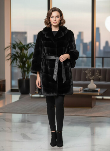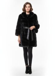 Пальто с норковыми вставками на воротнике и рукавах . Размер с-м , есть кожаный ремешок