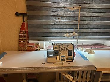 - Промышленный оверлок (многоигольный/многорядный) JACK на отдельном столе с линейкой-разметкой, стойкой для нитей и педалью. Электронный блок индикации на корпусе.