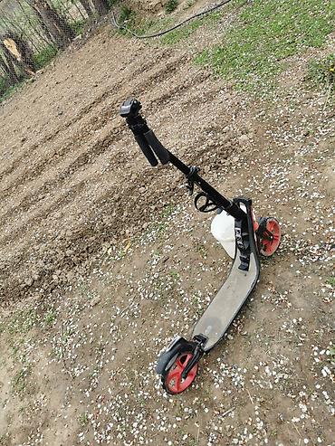 Городской самокат с амортизацией и ручным тормозом.Хорошем состоянии выдерживает 100кг - Складная конструкция: компактно складывается для переноски и хранения. - Колеса большого диаметра (переднее...