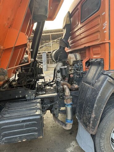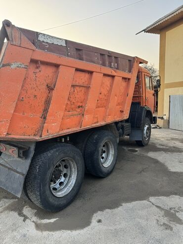 Самосвал КАМАЗ 6x4 - Кузов: стальной, оранжевый, усиленные борта, задняя разгрузка; гидроподъём. - Колёсная формула: двухскатные задние оси. - Кабина: классическая, двухместная, металлический бам...