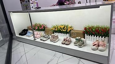 Продаются стеллажи (полки) для магазина/шоурума Примерно 2 метра в длину 30.000 сом за 3 стеллажа и 1 витринный стеллаж - Набор торговых стеллажей в современном стиле: корпус белый, кромка и цоко...