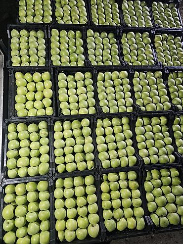 Яблоки зелёные, отборные, калиброванные по размеру и аккуратно уложенные в прочные пластиковые ящики. Плоды ровные, с гладкой кожицей, яркого зелёного цвета. Подходят для свежего употребления, выпечки, салатов, соков и заготовок. Удобная тара для хранения и транспортировки, яблоки отсортированы рядами для быстрой визуальной оценки размера.
