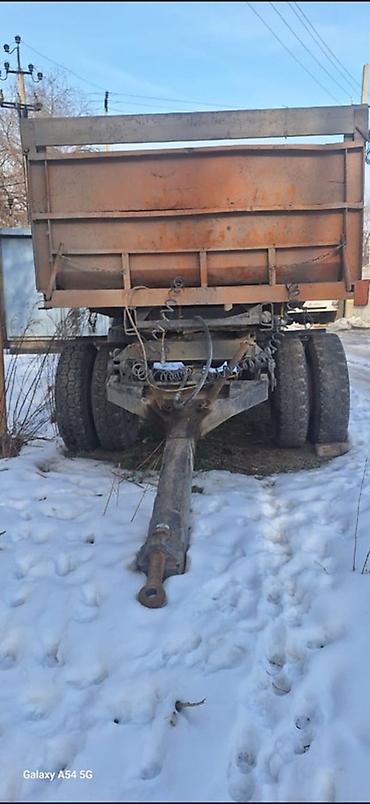 - Формат: прицеп-самосвал с высокими бортами, задний борт на цепях, механизмы опрокидывания под кузовом.