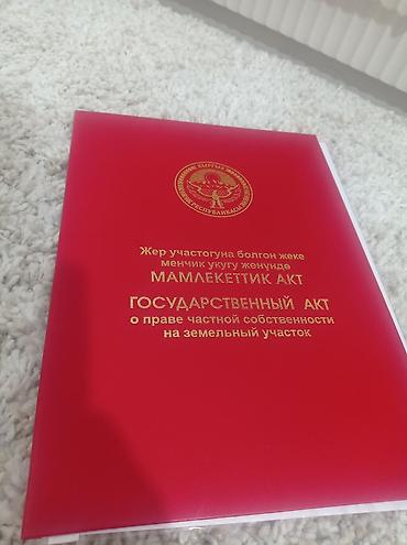 4000$ за одну сотку Земельный участок с госактом (Кыргызская Республика). Категория: частная собственность. Адрес по документам: с. Кызыл-Туу, ул. А. Жылжымышев, №33е. Площадь по документам и фа...