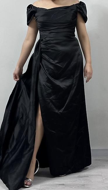 Вечернее платье, Классическое, Длинная модель, Атлас, Без рукавов, Шлейф, M, L