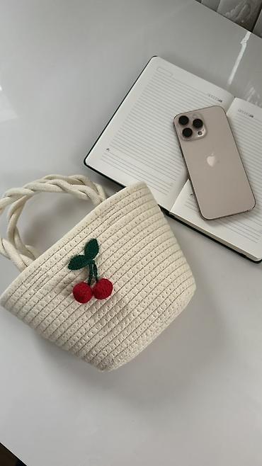Плетёные мини-сумки из плотного хлопкового шнура с декоративными