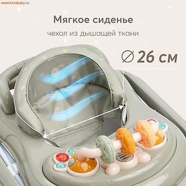 Детские ходунки Babywalker с музыкальной панелью и подсветкой. Особенности: - Круглая устойчивая база с защитными накладками. - Мягкое тканевое сиденье с высокой спинкой, цвет серый. - Игровая пан...