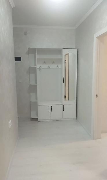 - Прихожая с полноценной системой хранения: открытые полки, крючки для верхней одежды, тумбы и шкаф с зеркалом.