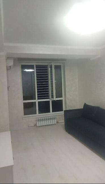 - Гостиная с большим окном, радиаторным отоплением и диваном.