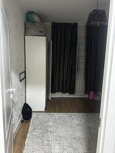 - Жилая комната правильной формы, окно с плотными шторами и тюлем; предусмотрено место под ТВ (выводы на стене), гардероб/шкаф.