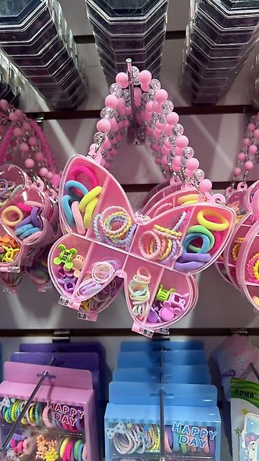 Наборы аксессуаров для волос Duo Lai Mei - Разнообразие моделей: резинки, крабики, зажимы, шпильки, бантики. - Формы и декор: сердечки, цветы, бабочки, ягодки, фигурки животных и мультяшных персон...