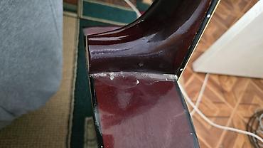 - На стыке грифа и корпуса видны следы ремонта лака/склейки, по кромкам корпуса местами сколы лака (см. фото для состояния отделки).