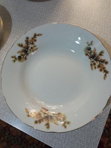 Продаю: 1. Блюдо глиняное, диаметр 36 см., цена 200 сом; 2. Тарелки фарфоровые СССР, с зелёной каймой, в наличии 18 шт, цена за все 950 сом; 3. Тарелки фарфоровые, белые без рисунка, 5 шт, цена за...