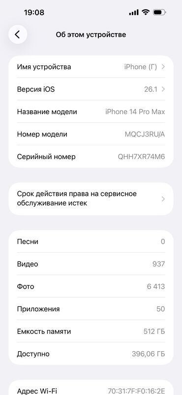 IPhone 14 Pro Max, 128 ГБ, тёмно‑фиолетовый (Deep Purple) Характеристики и особенности: - Модель: iPhone 14 Pro Max (указано в настройках) - Память: 128 ГБ - Цвет корпуса: Deep Purple - Версия iOS...