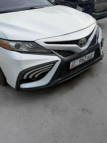 Передний бампер Toyota Camry V70 (рестайлинг/дорестайлинг 2018–2021), белый с черными декоративными элементами.