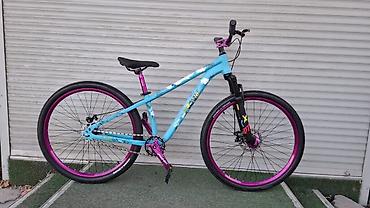 - Колёса: 26", двойные обода анодированные фиолетовые, втулки под фрик/дёрт, покрышки полуслик с выраженным боковым протектором.