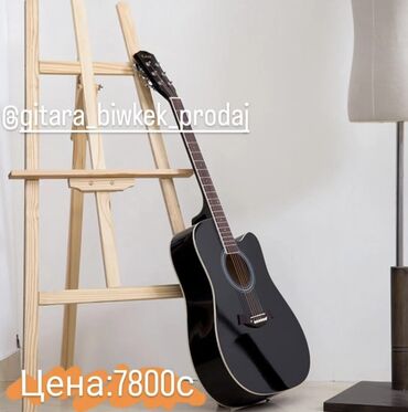 Акустическая гитара большой (черная, корпус типа дредноут с вырезом).