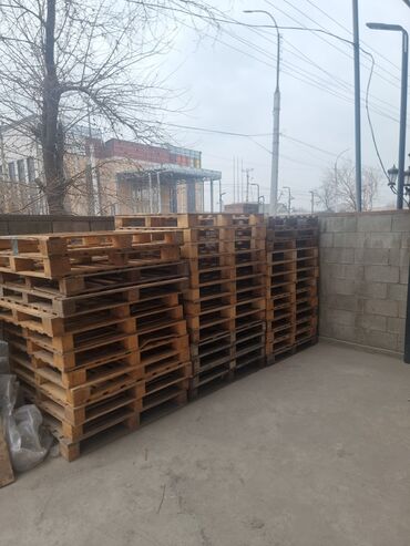 Деревянные поддоны (паллеты) - Материал: массив дерева (доска/брус). - Конструкция: классические двухъярусные паллеты на брусках. - Подходят для: хранения и перевозки грузов, складских работ, обус...
