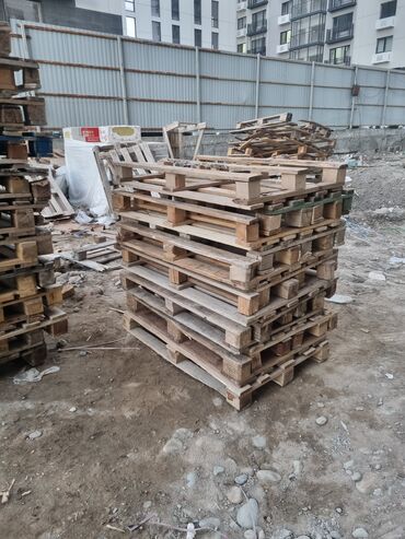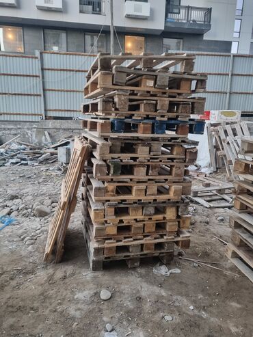 Деревянные поддоны (паллеты) - Материал: массив дерева (доска/брус). - Конструкция: классические двухъярусные паллеты на брусках. - Подходят для: хранения и перевозки грузов, складских работ, обус...