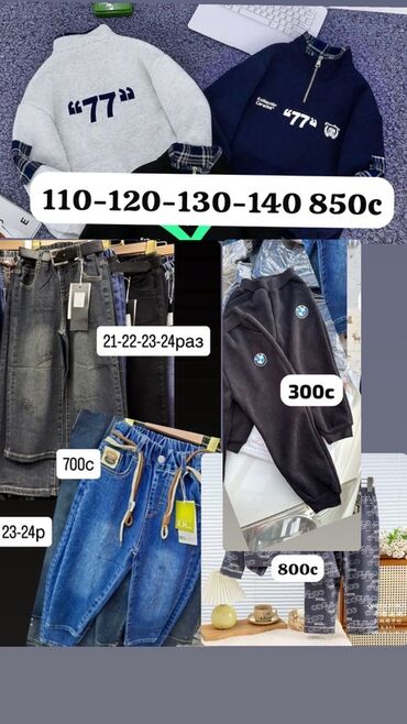 - Джинсы детские, разные модели и стирки: размеры 21–24, 23–24; цены 700 с.