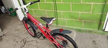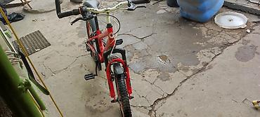 Горный/городской велосипед GMLA (20" примерно) в ярком красном цвете. Основные характеристики: - Рама алюминиевая с амортизатором (двухподвес). - Колеса примерно 20 дюймов с широкими покрышками дл...