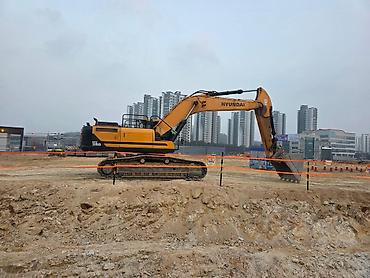 Гусеничный экскаватор Hyundai 385LS-9T Описание: - Полноразмерный экскаватор на гусеничном ходу для землеройных и строительных работ. - Маркировка модели на борту: 385LS-9T. - Объемный ковш для ра...