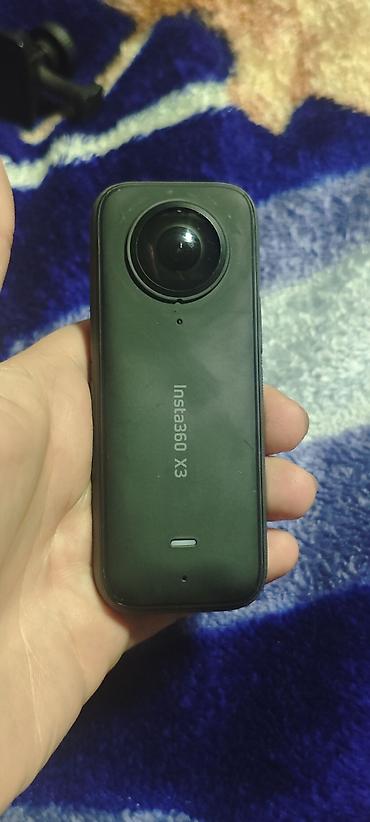 - Комплект на фото: камера Insta360 X3, аккумулятор, карта памяти microSD Insta360 64 ГБ, крепление‑площадка/адаптер под стандартный «гоупро» разъём.