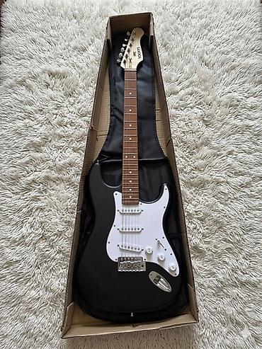 - Корпус: классическая форма Strat, чёрный глянец