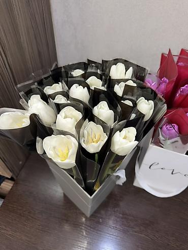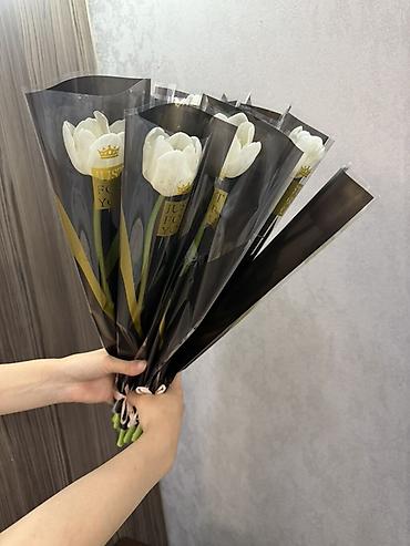 Тюльпаны оптом упакованные в крафт - Ассортимент цветов: белые