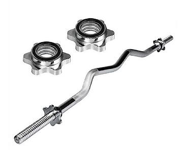 стальной гриф для наборной штанги изогнутый W-образный с резьбовым замком. Предназначен для выполнения разнообразных упражнений, где нужны разные варианты хвата. Форма грифа позволяет снизить нагрузку на кисти при выполнении ряда упражнений. Используется в основном для упражнений на бицепс и трицепс, а также для французского жима. Зона хвата выполнена со специальной насечкой для большего удобства хвата и безопасности. Гриф изогнутый для штанги имеет специальное долговечное покрытие, что обеспечивает защиту металла от ржавчины и потемнения. Гриф не имеет пустоты внутри, а выполнен из цельного куска стали.