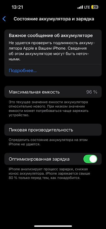 - В разделе «Состояние аккумулятора» отображается системное сообщение: «Не удается проверить подлинность аккумулятора Apple в вашем iPhone. В связи с заменой батареи