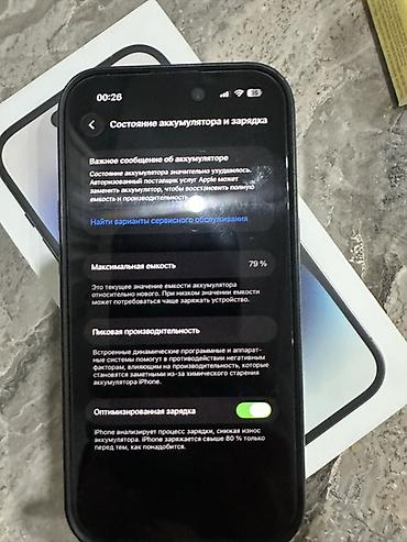- Отображается состояние аккумулятора в настройках: максимальная ёмкость 79%, включена функция «Оптимизированная зарядка».