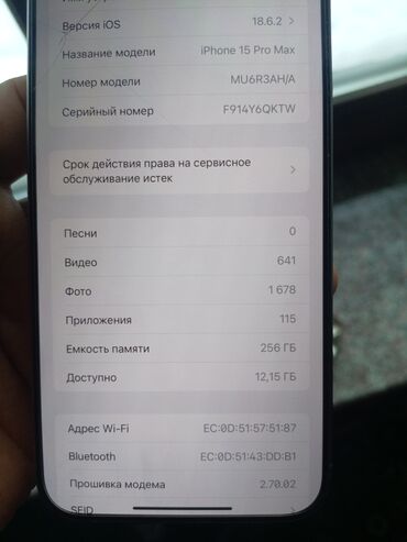 - Память: 256 ГБ (доступно ~12,15 ГБ на момент фото)