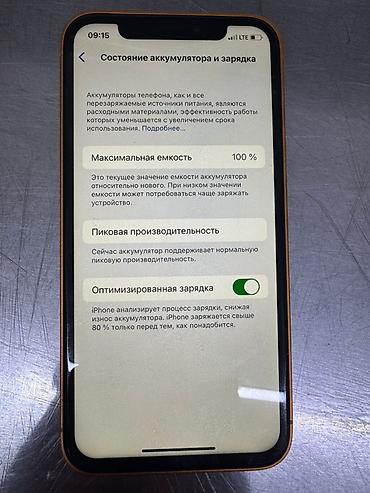 - Аккумулятор: 100% максимальной ёмкости, нормальная пиковая производительность, активирована функция продления срока службы аккумулятора.