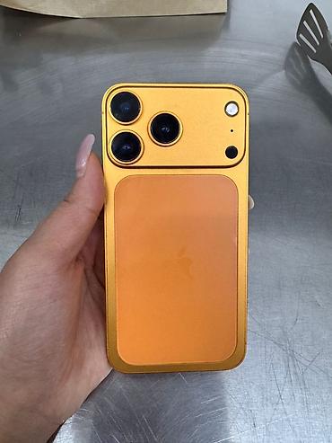 IPhone в редком оранжево-золотом цвете с тройной камерой. Экран с вырезом под Face ID. На фото — раздел “Состояние аккумулятора и зарядка”: максимальная ёмкость 100%, включена “Оптимизированная зарядка”.