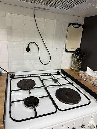 Практичная плита для кухни с возможностью готовить на газу и электричестве и выпекать в электродуховке.