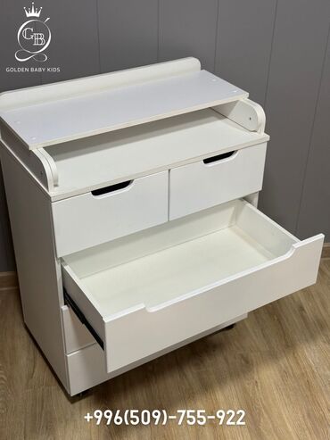 Идеален для хранения детской одежды, подгузников и аксессуаров, а пеленальная поверхность облегчает ежедневный уход за малышом. Бренд: Golden Baby Kids.